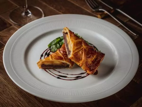 新鮮な豚の血とキャラメリゼしたりんごをパイ生地で包んで焼き上げた『ブーダンノワールのアップルパイ』