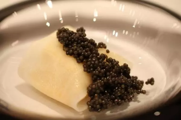 『軽く燻したキャビアのラビオリ』