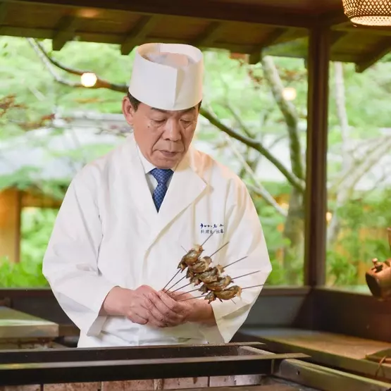 【うかい鳥山】に入って16年、和食一筋に腕を磨き、6年前から料理長となり現在に至る。手を加えすぎず、素材の魅力をストレートに引き出すことを流儀に、食材同士の組み合わせやだしとのバランスを考えながら、季節感あふれる料理を提案している。