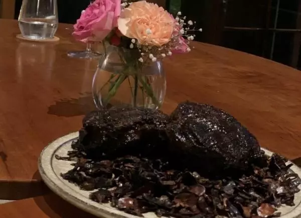 そしてもうひとつ、今度はマトンです。発酵ブルーベリーと黒ニンニクを纏っていて真っ黒です。これも臭みがまったくなく、脂身がとても美味しい。