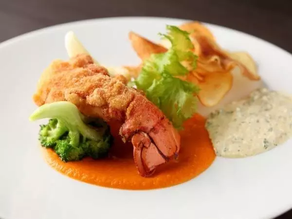 料理は厳選食材を使った逸品が勢ぞろい。彩り豊かな前菜から、肉や魚介の新鮮さが際立つメイン料理、繊細なアレンジのデザートまで、どの料理もフレンチの奥深さが満喫できます。人気の『海老料理』は自家製のソースも魅力。兵庫県産の漬物入りのタルタルソースとマイルドなトマトソースが海老の旨みを引き立てています。