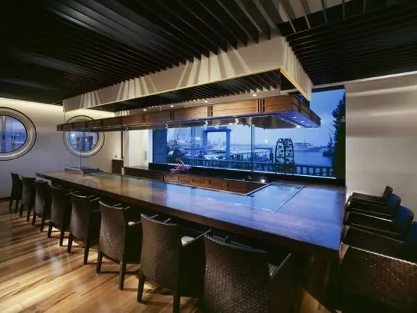 オーシャンビューのホテルレストランで、贅沢な鉄板焼