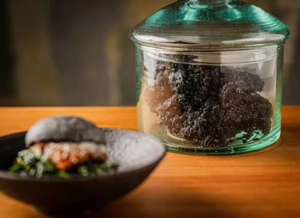 料理を提供する際、「アスファルト」を横に添えて話を始めます