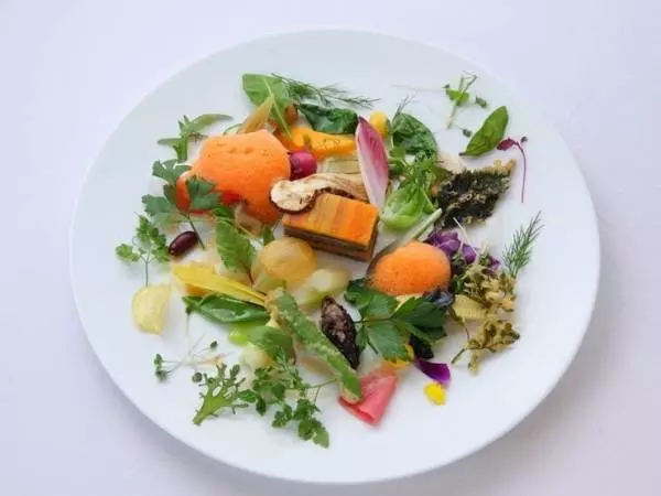 新鮮な驚きを感じる料理を、というシェフの言葉通り、どの料理も素材に合った工夫がされていて感動的。野菜料理のひとつに「モネの庭園」を再現した一皿があります。天ぷらにしたり、焼いたり、多彩な旬の野菜をいろいろな調理法で味わえるのが魅力。ワインを片手に会話を楽しみながらゆっくり味わいたい逸品です。