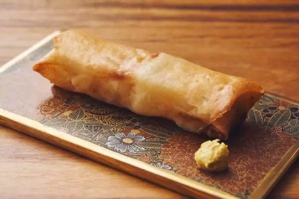 スペシャリテとなる一皿も実にユニーク。コースメニューにプラスしてオーダーできる『おでん春巻き』です。中には豚肉と大根がゴロリと交互に入っています。