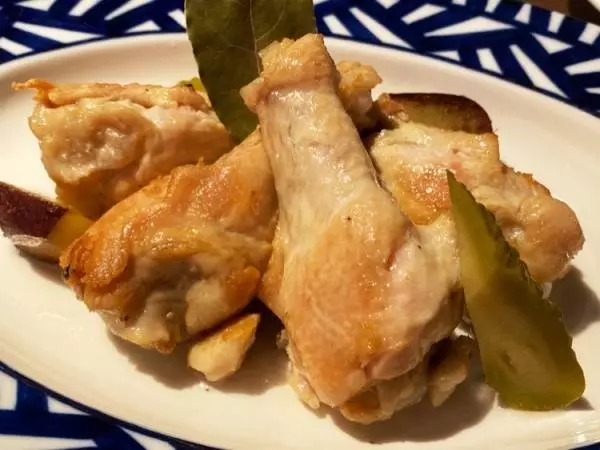 やさしいアメ色の焼き目がついたこの手羽元、登場の際にこの手羽元としての原型を保てているのが不思議なくらい、フォークを入れると骨からすんなりはがれ落ちていきます。