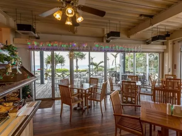 店内のすべての席から海と空の美しい景色を一望できるレストランです。開放感いっぱいのテラス席で友達とワイワイとランチをしたり、エレガントな店内で大切な人とロマンチックなサンセットを眺めてワイングラスを傾けたり、贅沢なリゾート気分が満喫できます。