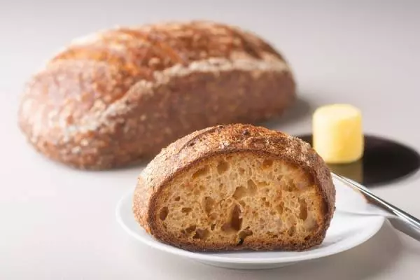 北海道のとうもろこしを1週間乾燥させ、挽いてつくる自家製サワードゥ ブレッド。酵母はシェフが数年育てているものを使用