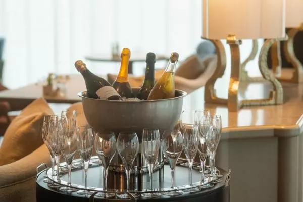 ちなみに、ダイニングの隣には、シャンパンを楽しめるサロンが併設されています。食事前にはこちらで一杯飲みながら、待ち合わせるのも素敵です。