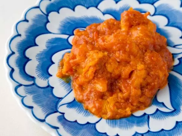 仕上がりに卵が加わる『天然海老のチリソース 4切』はチリの赤身が強すぎず、見た目も優しい印象に