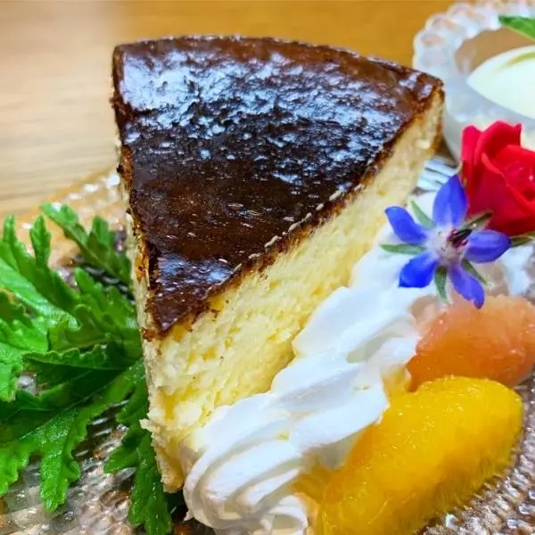 見た目も華やかでオシャレな『バスク風チーズケーキとグラスバニラ』