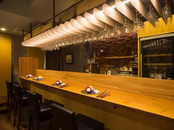 落ち着きと和みを与えてくれる木製のカウンター席はデートに最適