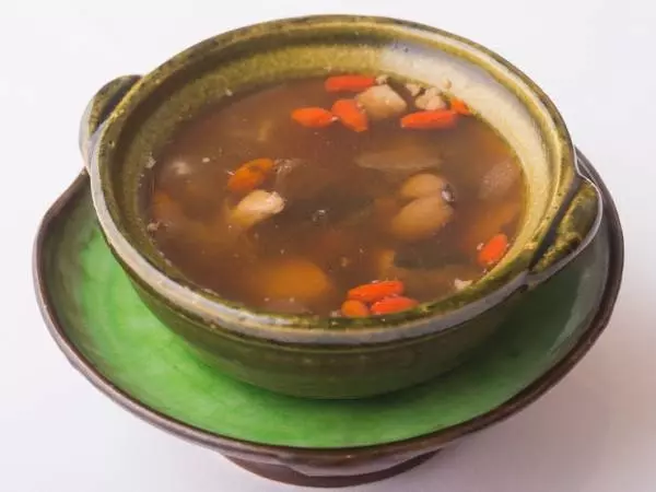 『烏骨鶏入り薬膳スープ』は湯気からも優しい香りが立ち込めます