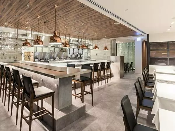 名古屋駅直結、JRゲートタワーにある【MASA’S KITCHEN名古屋JRゲートタワー店(マサズキッチン)】。旬の食材にシェフのアイデアを織り交ぜた、枠にとらわれない斬新な中華料理が味わえると評判のお店です。店内は、街の喧騒を忘れるスタイリッシュな雰囲気。デートには、調理のライブ感を楽しめるカウンター席もオススメです。