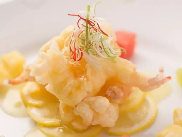 さわやかな酸味が楽しめる『海老の揚げ物レモンソース』