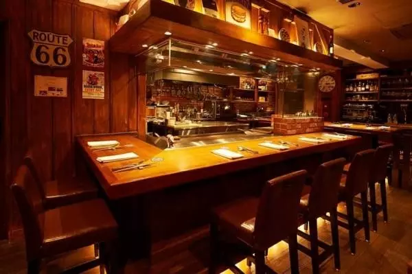 中目黒にある創作鉄板フレンチの【ブロックス】。旬の食材を取り入れた創作フレンチをカジュアルに楽しめるのがこの店の魅力。店内は、木の温もりがどこか懐かしい、カジュアルな雰囲気。