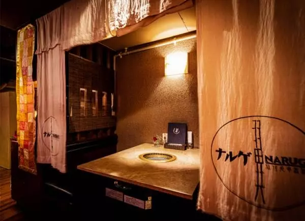 暖簾でプライベート空間をつくり出した半個室は、大人の焼肉デートにピッタリ