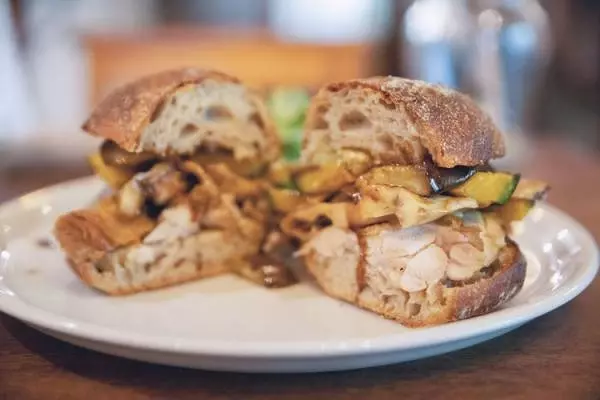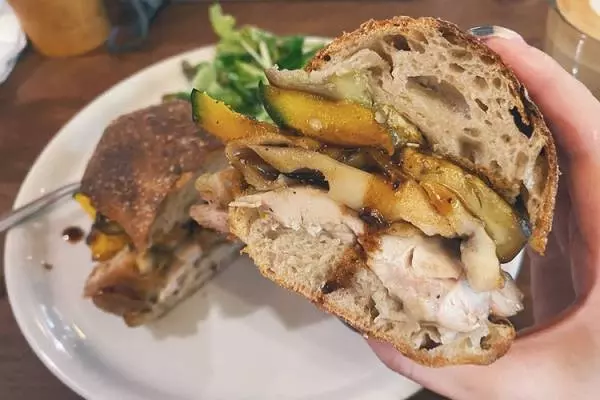 サンドウィッチの『W(ドッピオ)』1,300円。具材は「チキンとまいたけのオーブン焼き」と「季節野菜のオーブン焼き バルサミコソース」を選択しました