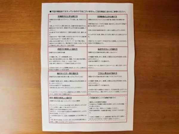 商品ごとの作り方が丁寧に記載された手順書が同封されているので、不慣れな方でも安心して調理ができます