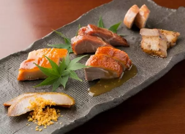 「医食同源」などの中国料理の食思想をベースに、日本人好みの味に寄せてつくる【花梨】の料理。中国から取り寄せる本場の食材に加え、日本の旬食材を使って素材の味が引き立つ料理に仕立てています。専用の釜で焼かれた『焼き物各種』は、ジューシーな肉の旨みとパリッとした皮の食感がたまらない人気メニューです。
