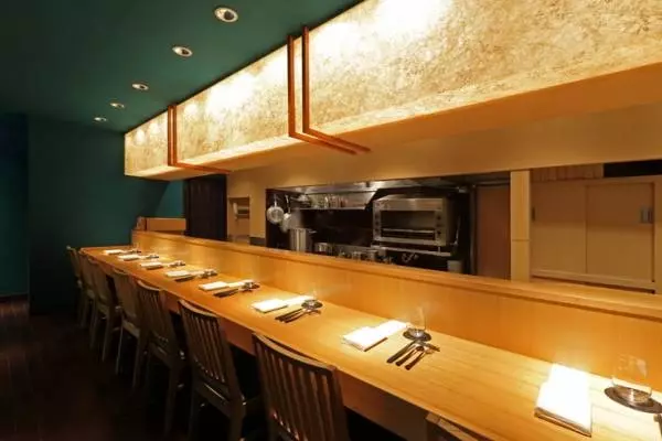 オープンカウンター8席を設えた店内は和の雰囲気。シェフの調理の技術を間近に感じながら食事をすることができます。コース料理一本に絞り、一斉スタートの2回制。他のゲストと程よい距離感を保ちながらコミュニケーションを楽しめるのも、このお店ならではの体験。