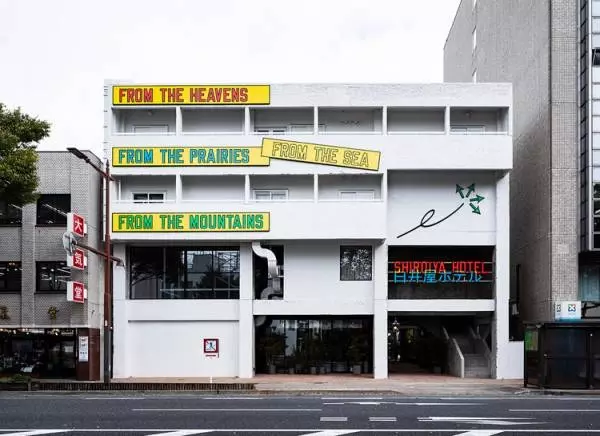 外観にあるのは、コンセプチュアル・アートの旗手として活動してきたローレンス・ウィナーの作品