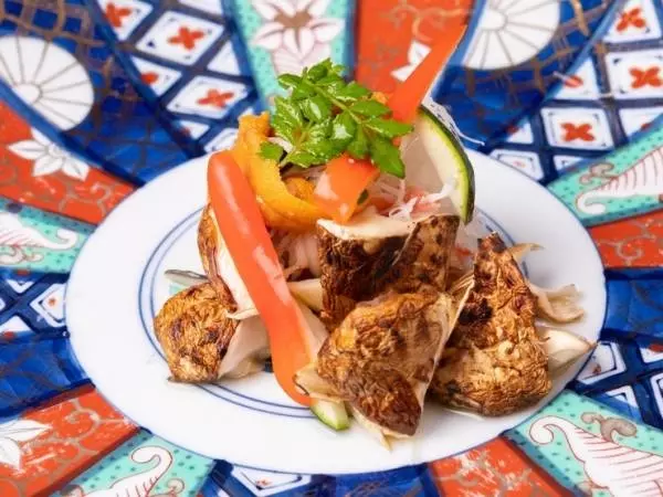 贅沢な素材を目の前で調理してくれる『毛ガニと雲丹と松茸の和え物』10,000円~