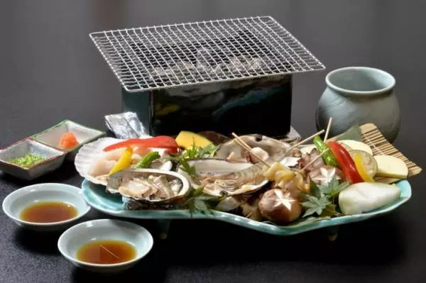 『海鮮焼炭火』は、エビや魚貝類に季節の野菜を添え、磯の香りと旨みがぎゅっと詰まった【ちそう亭 別館】のオススメ。この他にも、抜群の鮮度と透明感で噛むほどに甘味と旨みが口に広がる『活イカ』や引き締まった身が特徴の『三陸あわび』、肝が絶品の『かわはぎ』やミネラル豊富な『ほや』など、三陸の海の幸がたっぷりと楽しめます。