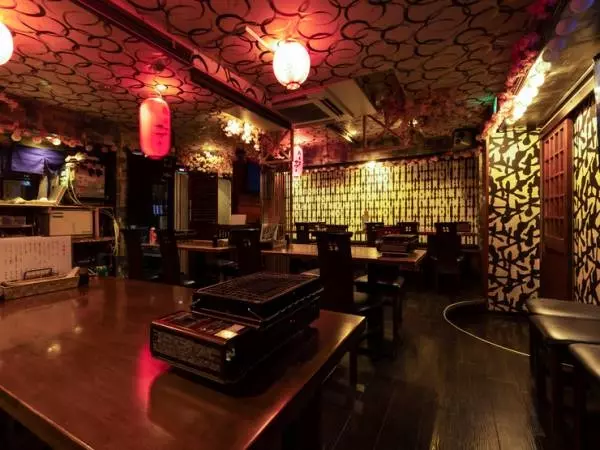 国分町の喧騒を忘れさせる落ち着いた空間。各テーブルに炉端焼き台を設置しています