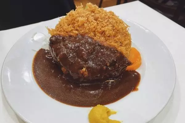 【レストラン桂】を紹介してくれた岩本さんオススメの『特製メンチカツ』。