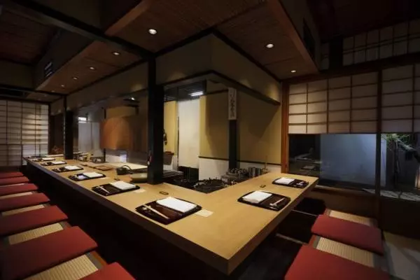 京都・御所南の閑静な町並みの一角に溶け込むように佇む【御幸町 田がわ】。店内は、靴を脱いで上がる掘りごたつ式のカウンター席のみで、店主の作業を見ながらゆったりと食事を楽しむことができます。陶器でつくられた昔ながらの炉とこだわり抜いた紀州の備長炭で、素材のポテンシャルを極限まで引き出した料理は幅広い年齢層を虜にしており、京都はもちろん、日本各地からファンが多く訪れています。