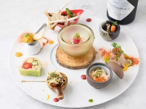 オードブルは、市場直送の旬の食材を活かした前菜の盛り合わせ。新鮮な素材を型にとらわれない気まぐれなスタイルで仕上げた、和洋中の料理が並ぶ人気メニューです。最初の乾杯をより楽しいムードに盛り上げてくれる、華やかな逸品です。