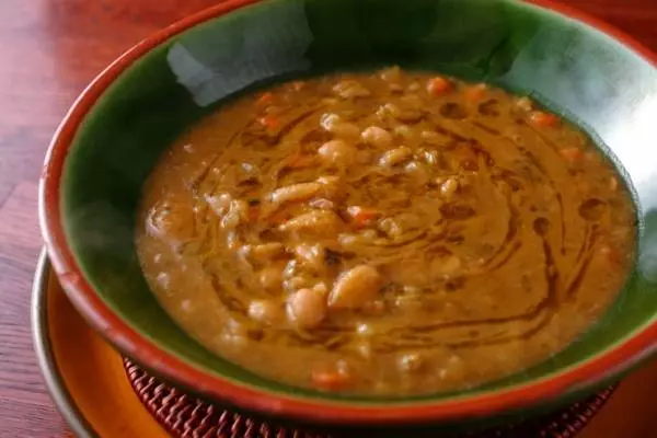 フランス産の白インゲン豆とトマト、赤玉ねぎなど7種の野菜のスープ。だしは使わず、豆と野菜の旨みを丁寧に引き出したやさしい味わいです。