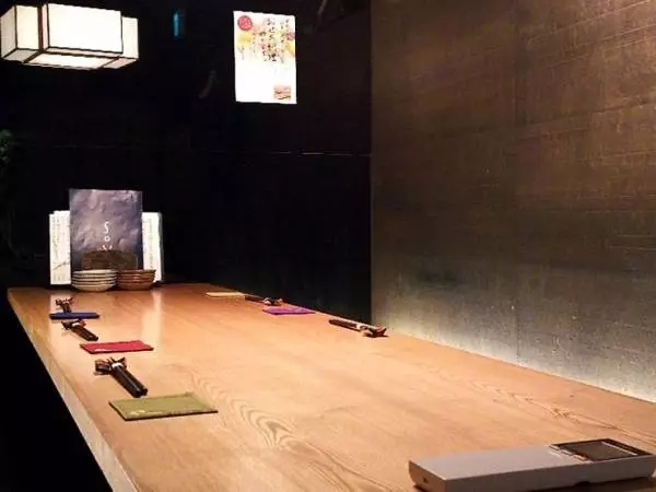 烏丸駅から歩いて行ける便利なエリアですが、近くには博物館や寺院もあり、静かな雰囲気。そんなまわりの景色に溶け込む洗練された外観と、京都を感じる和モダンの店内が人気です。カウンター席をはじめ、店内奥には半個室の掘りごたつ席や完全個室もあるので、大切な記念日や接待など、いろいろなシーンで使えます。