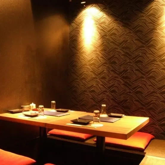 和の風情が漂う個室は、間接照明が幻想的に使われ、上質なくつろぎ時間を演出