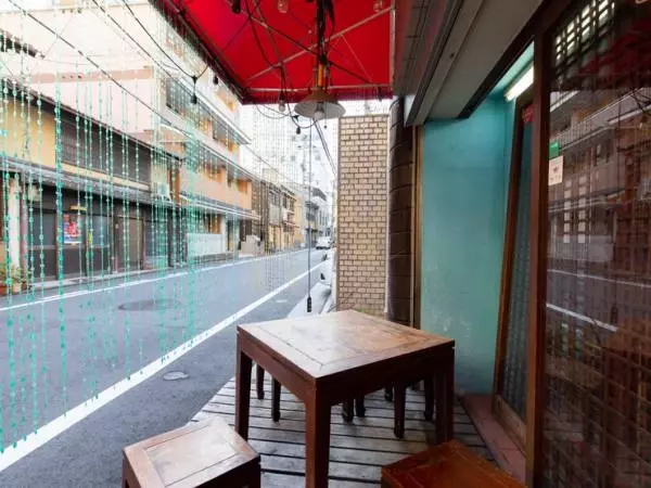出入口の軒下には、小さめのテーブルセットが置かれています。京都らしい街並みを眺めながら、ちょっとした屋台気分を楽しめるステキな空間に。夜風が心地よい季節や、少人数で集まりたいときには、屋外でベトナム料理を楽しむのもオススメです。