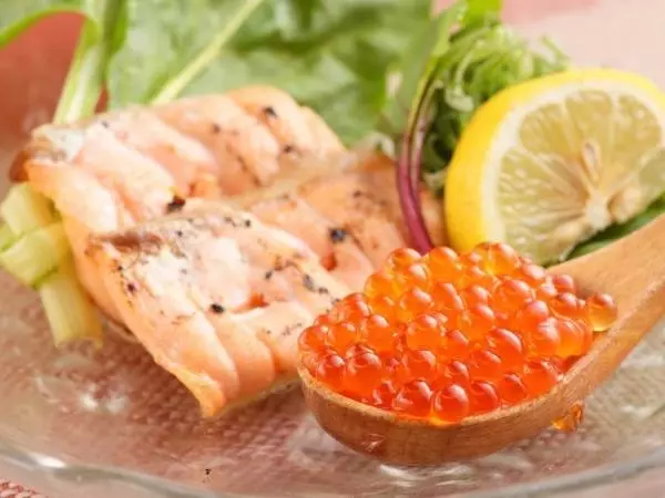 串焼き店で、いくらをトッピングしたサーモンを満喫