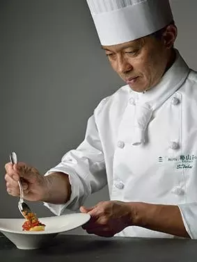 京都国際ホテルにてフランス料理を学び、2004年より【フォーシーズンズホテル椿山荘 東京】にて、VIPパーティーの料理を担当。2008年より、メインダイニング【イル・テアトロ】担当となり、イタリア人シェフと共に、料理の幅を広げ、【JETSTREAM】料理長にも就任。2018年より【イル・テアトロ】シェフに就任。