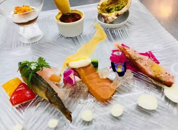 料理へのこだわりを「宝石箱を開ける時のようなサプライズを込める」と語る尾鷲幸男シェフが、それらに伝統の技法を施し、極彩色の馳走へと変えて提供します。