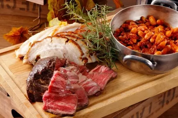 ポルケッタはハーブとニンニクの風味を効かせ、丁寧に焼き上げた逸品。香り高いハーブと柔らかな肉質のポークのハーモニーをどうぞ。一方ローストビーフは旨味を閉じ込めた人気メニュー。コクのあるベイクドビーンズとご一緒に楽しめます。