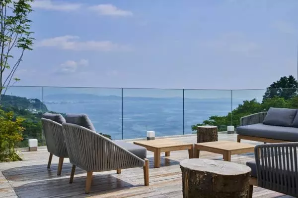 小田原駅へ到着したら、東海道本線へ乗り換えて「根府川駅」を下車。相模湾の美しい水平線を横目に、送迎車で7分ほど向かった先に、その名の通り凛と佇む【凛門】。「生まれ変わったような私と出会う」をコンセプトに、人間の免疫力に着目。最新科学の寝具による良質な睡眠や、ルフロ湯治による基礎体温の改善、心にも栄養にもバランスの取れた食事で、ゲストの健康をデザインする、あたらしいリトリートホテルです。