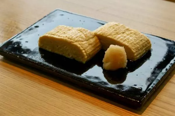 卵料理は目玉焼き、だし巻き玉子、オムレツから選ぶことができるのが嬉しいです。使用している卵は、相模原の平飼い卵。だし巻き卵はみずみずしく、口の中でぷりっと弾ける食感がなんとも幸せです。