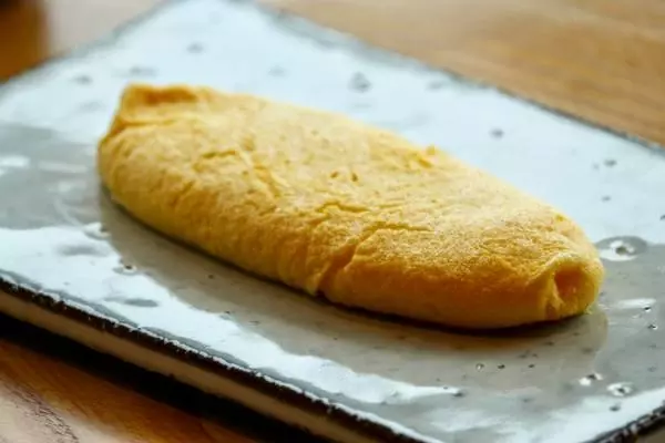 美しいフォルムから心が弾むオムレツ。ゆっくりと箸をいれ、ふわっとした感触を確かめながら口へ運びます。卵が固まるギリギリの火入れの妙で、なめらかに溶けていく贅沢な味わいに心酔します。