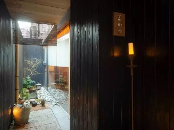 東京・神楽坂を見守る毘沙門天善国寺の裏手にひっそりと佇む、黒塀に囲まれた日本料理店。丁寧に打ち水が施された石畳を奥へすすんで引き戸を開けると、一転して美しい白木に覆われた空間が出現し、その凛とした雰囲気に心が動かされます。