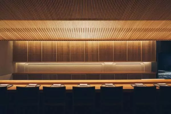 天井も木を使い、数寄屋作りをベースにした静謐なカウンター
