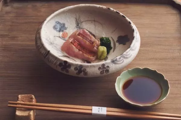 金目鯛のお造り。造りはこうした炙りものを含み、旬の魚で3種類ほど登場。