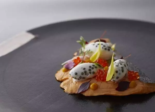 フランス・シャンパーニュ地方の三つ星レストラン【レ クレイエール】のスペシャリテ、『スモークサーモンのアラミニッツ』を日本風にアレンジ。
