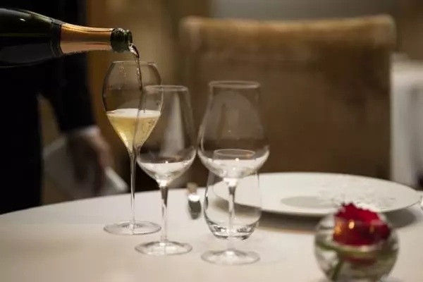 600種のワインのうち、422種がフランス産。なかでも87銘柄から選べる、シャンパーニュの品揃えは圧巻です。ワインに詳しくなくても、ソムリエが料理や好みに合うワインを提案してくれるのでご安心を。グラス一杯から頼めるので、気軽に相談してください。