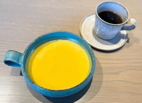 【Hotel’s】モーニングのセットにつくにんじんのポタージュ。くるみのオイルでニンジンの皮を表現。まるでかぼちゃのような甘さでした