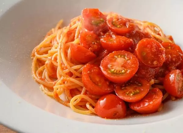 店舗のオペレーションだけでなく、グルメ通なら料理の内容も気になるところ。料理は、人気イタリア料理店【KNOCK CUCINA BUONA ITALIANA】の統括責任者兼総料理長・梶原政之さんが監修。パスタをはじめとしたイタリアンと、沖縄地産食材のフュージョン料理が楽しめます。『フレッシュトマトのスパゲティ』800円